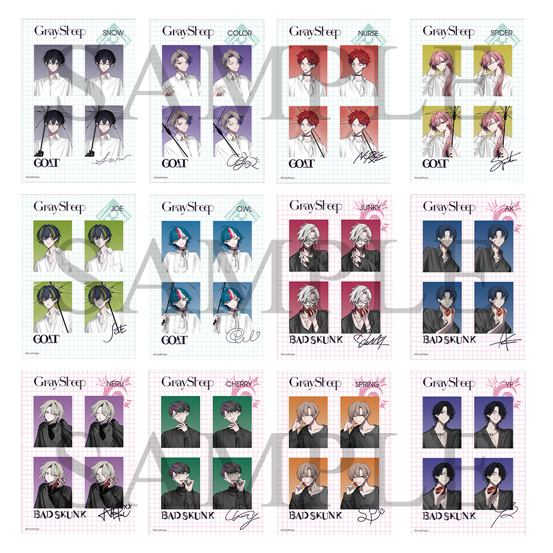 絵柄:SNOW、COLOR、NURSE、SPIDER、JOE、OWL、JUNKY、AK、